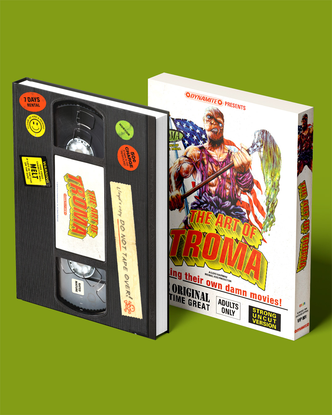 For The Art of Troma, I designed a slipcase and book cover celebrating Troma’s cult-film legacy. Created in collaboration with Dynamite Comics and Troma, the project's chosen direction was to look as if it had been plucked straight from an 1980s video store shelf, with the book itself designed to mimic a VHS tape. The challenge was to elevate what is now an obsolete, albeit nostalgic, medium into a lasting, collectible object.