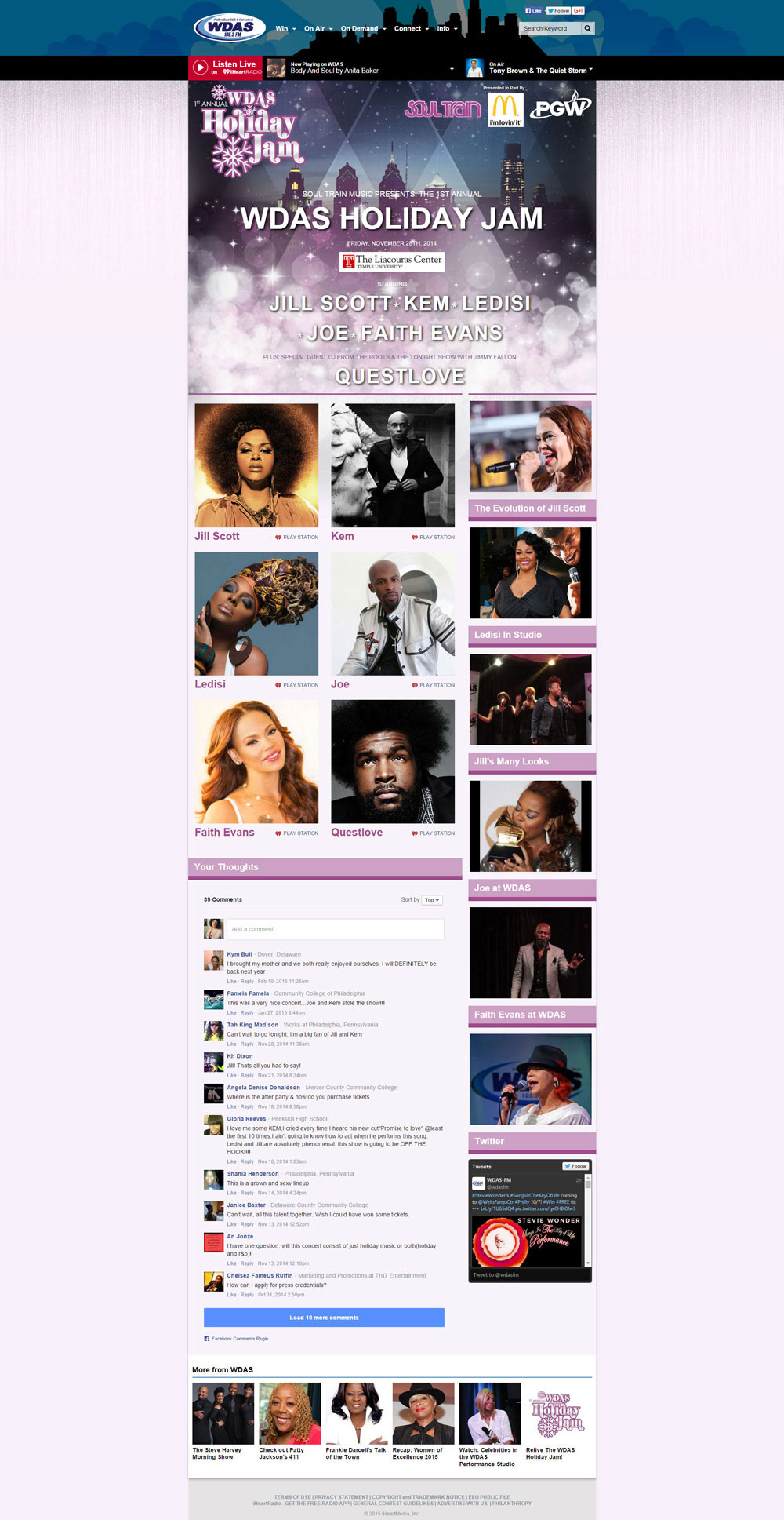 For WDAS’s annual Holiday Jam concert, I created the event logo and designed and developed the front-end using a combination of coding and the company-wide CMS. The aim was to capture the festive energy of the show while giving fans a seamless way to access event details and ticketing. We needed to engage the audience from first click to concert night.